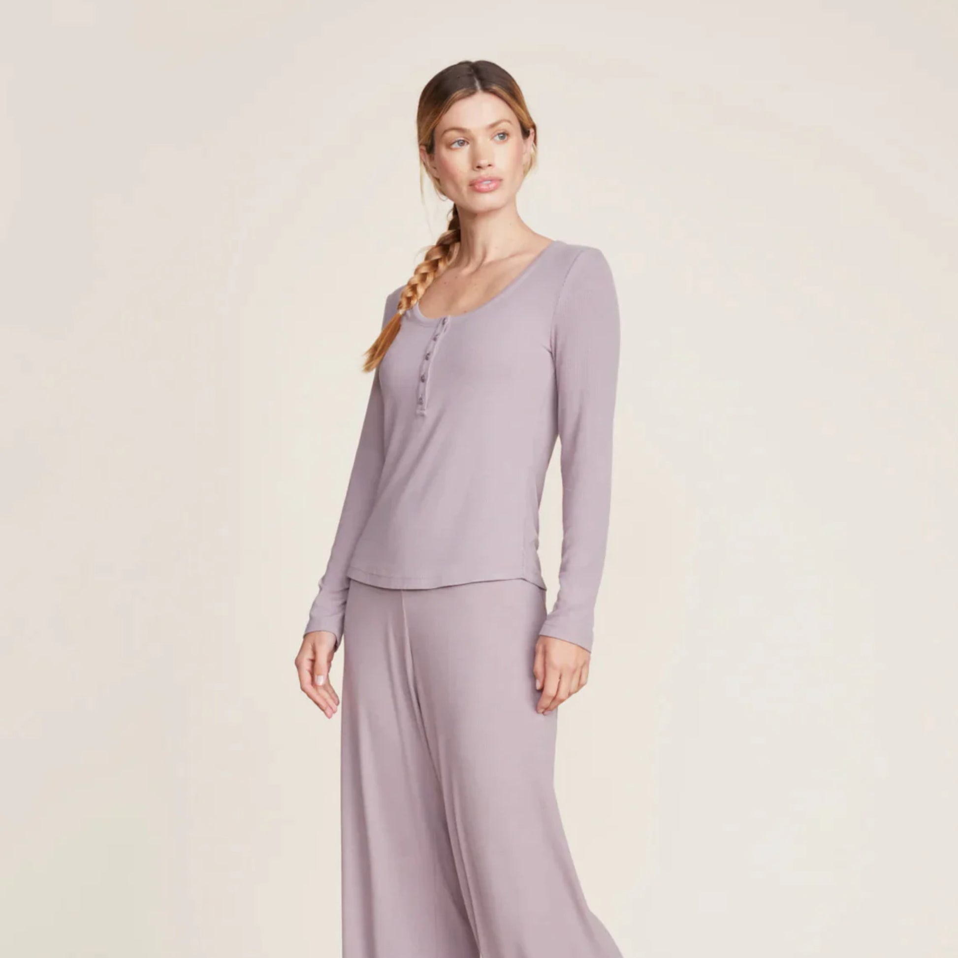 From our Barefoot Dreams Malibu Collection® and crafted from a soft ribbed fabric, this henley features a scoop neck, long sleeves, and a slight shirttail hemline for a fitted yet comfortable fit. The ultimate in lounging style, this henley is designed for all-day comfort. Complete your set with our matching Malibu Collection Ultra-Soft Rib Wide Leg