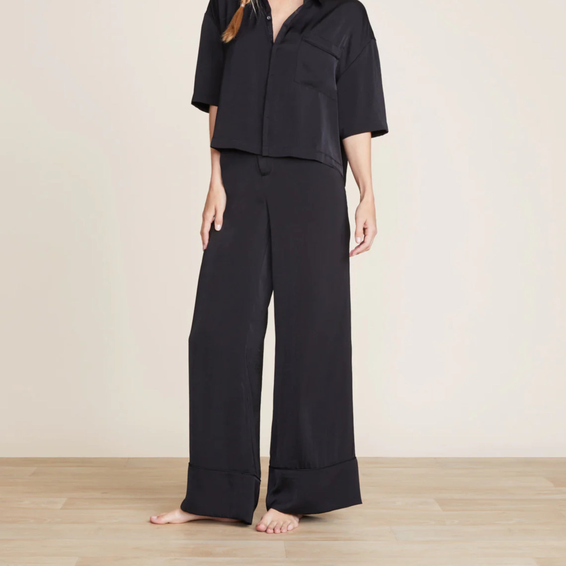 From our Day to Night Collection ™, the washed satin pant offers a mid-rise construction and button front closure with an elasticated waist, providing a comfortable, semi-relaxed fit. Featuring two inseam pockets and dyed piping detail on the cuffs, these pants are perfect for a night out or an office setting.