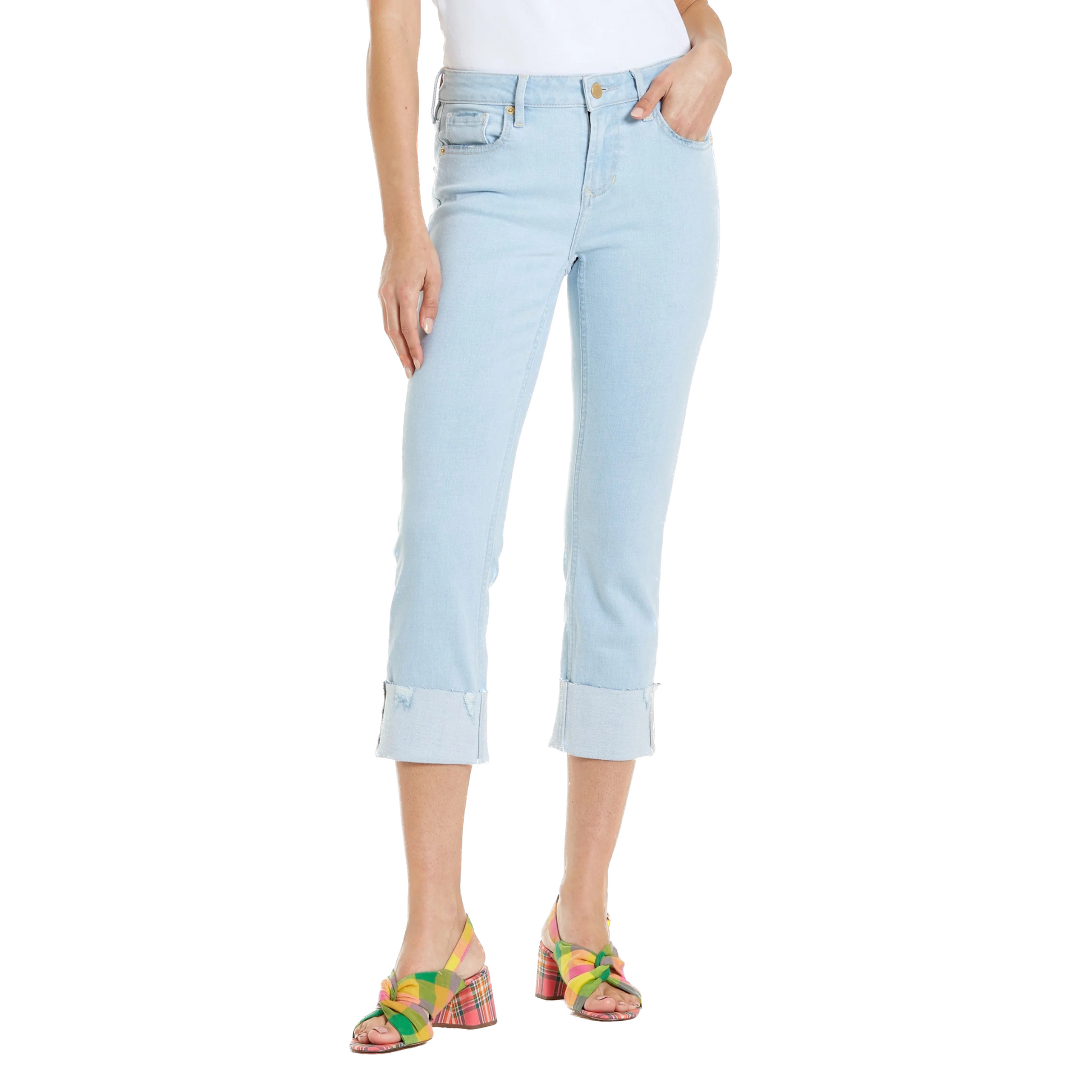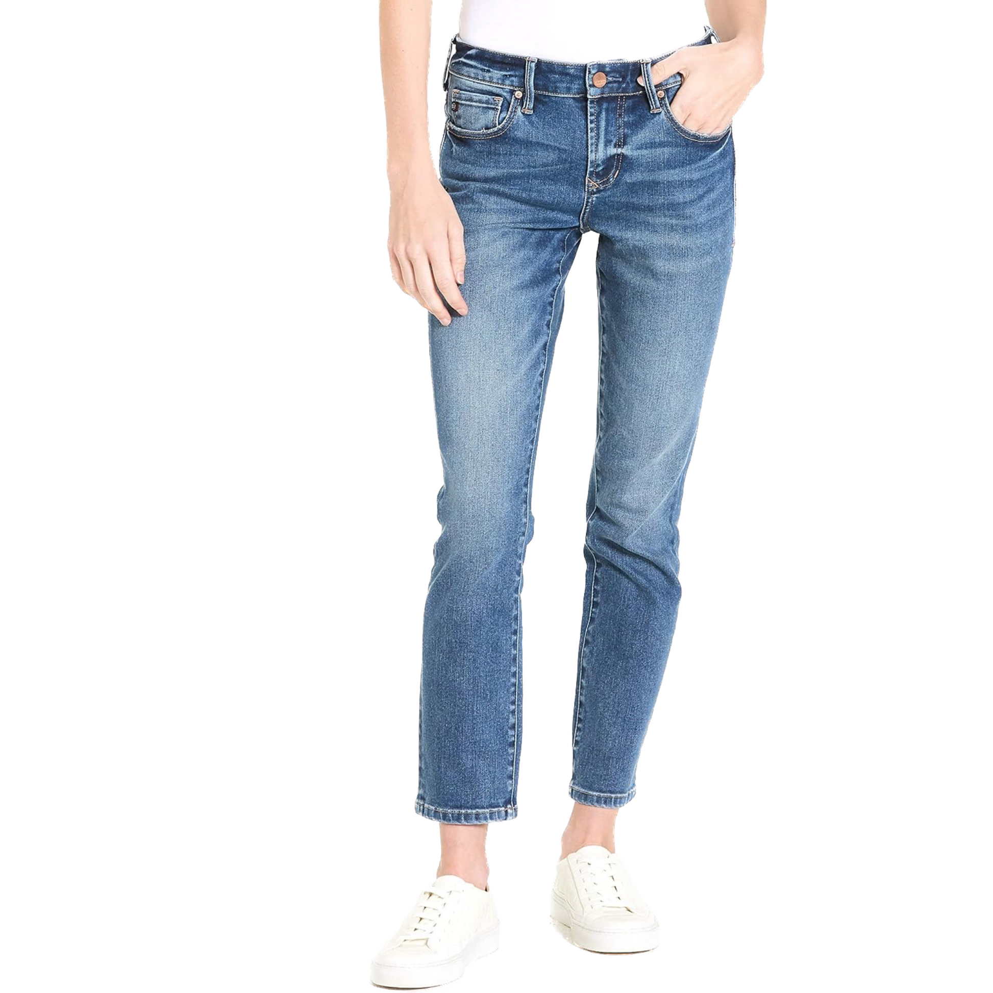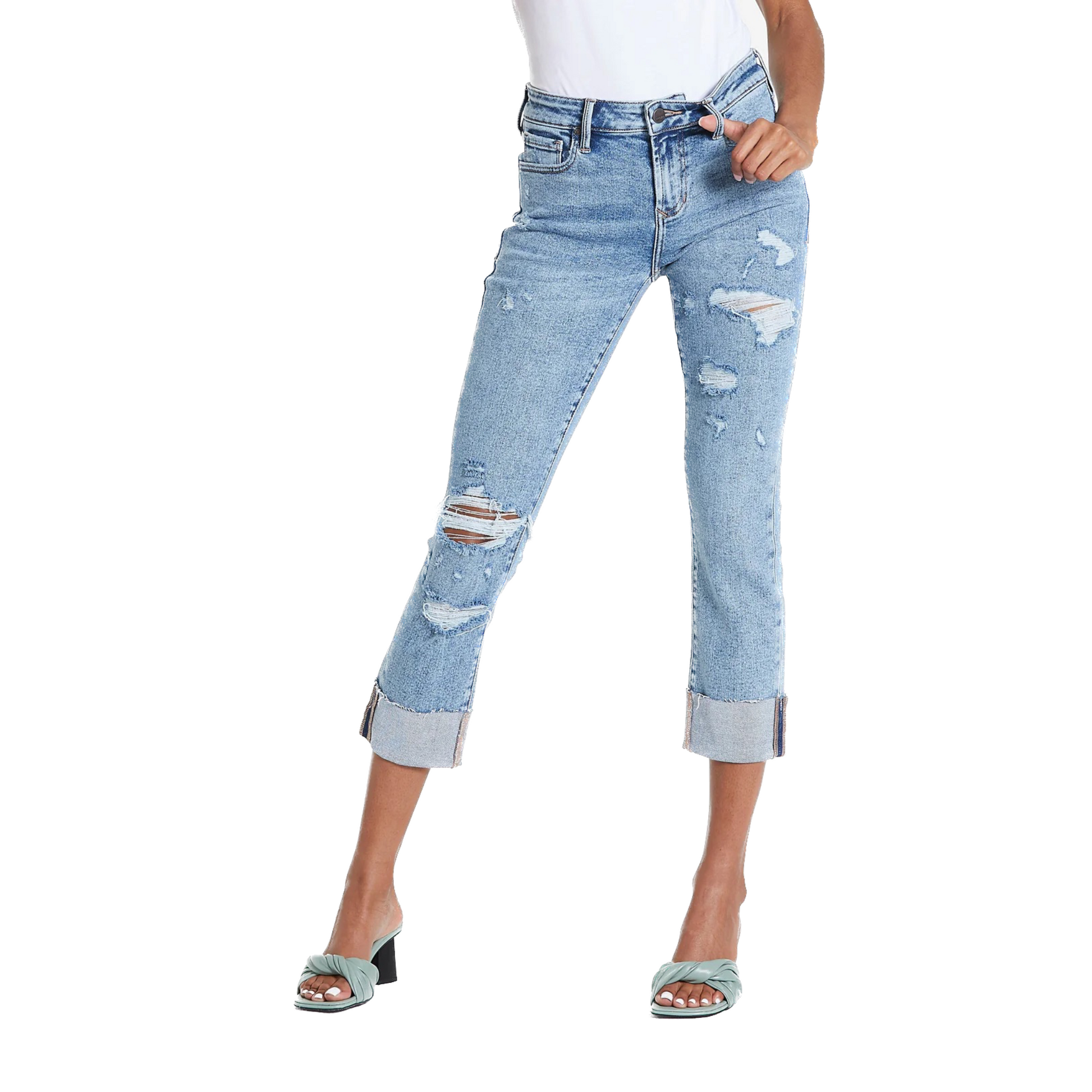 Sit slightly lower on the waist with a modern fit that hugs your curves and slims the mid-thigh. Experience comfort stretch denim that lets you explore your style with confidence. Adventure awaits with a slim straight leg fit, cuffed inseam, and notable style. Take the plunge and discover your perfect look!