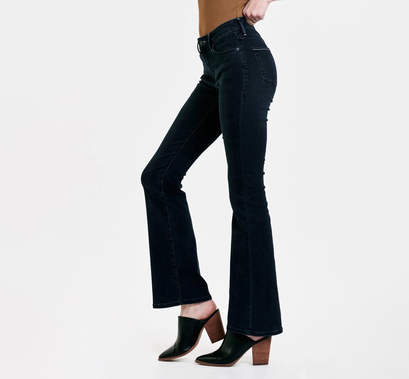 Mid rise bootcut fit jeans in a rich hue, designed for a flattering silhouette and unparalleled comfort.