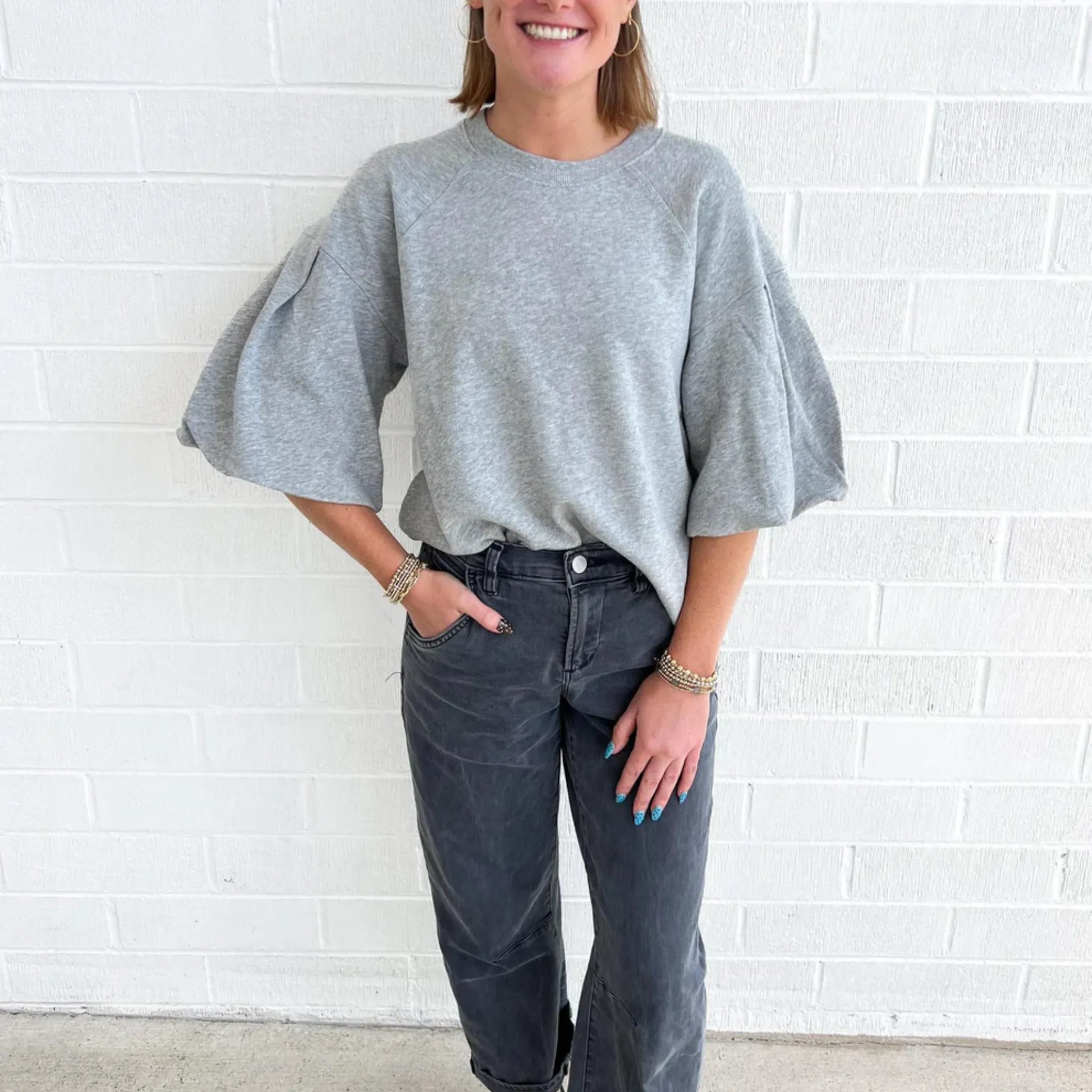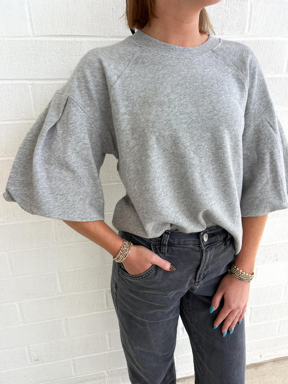Puff sleeve knit top from Dear John! Short sleeve, sweatshirt top pairs great with your favorite denim!