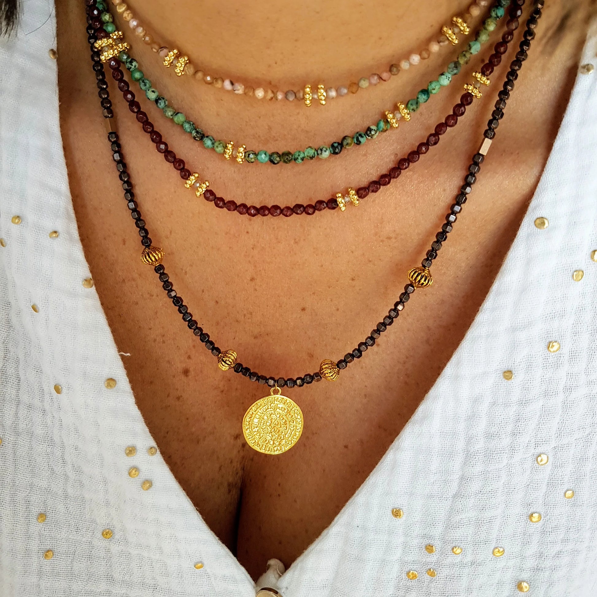 Our necklace is made from high quality natural stones, carefully selected for their beauty and positive energy. Each stone is unique, which means your necklace will be truly unique and personal.