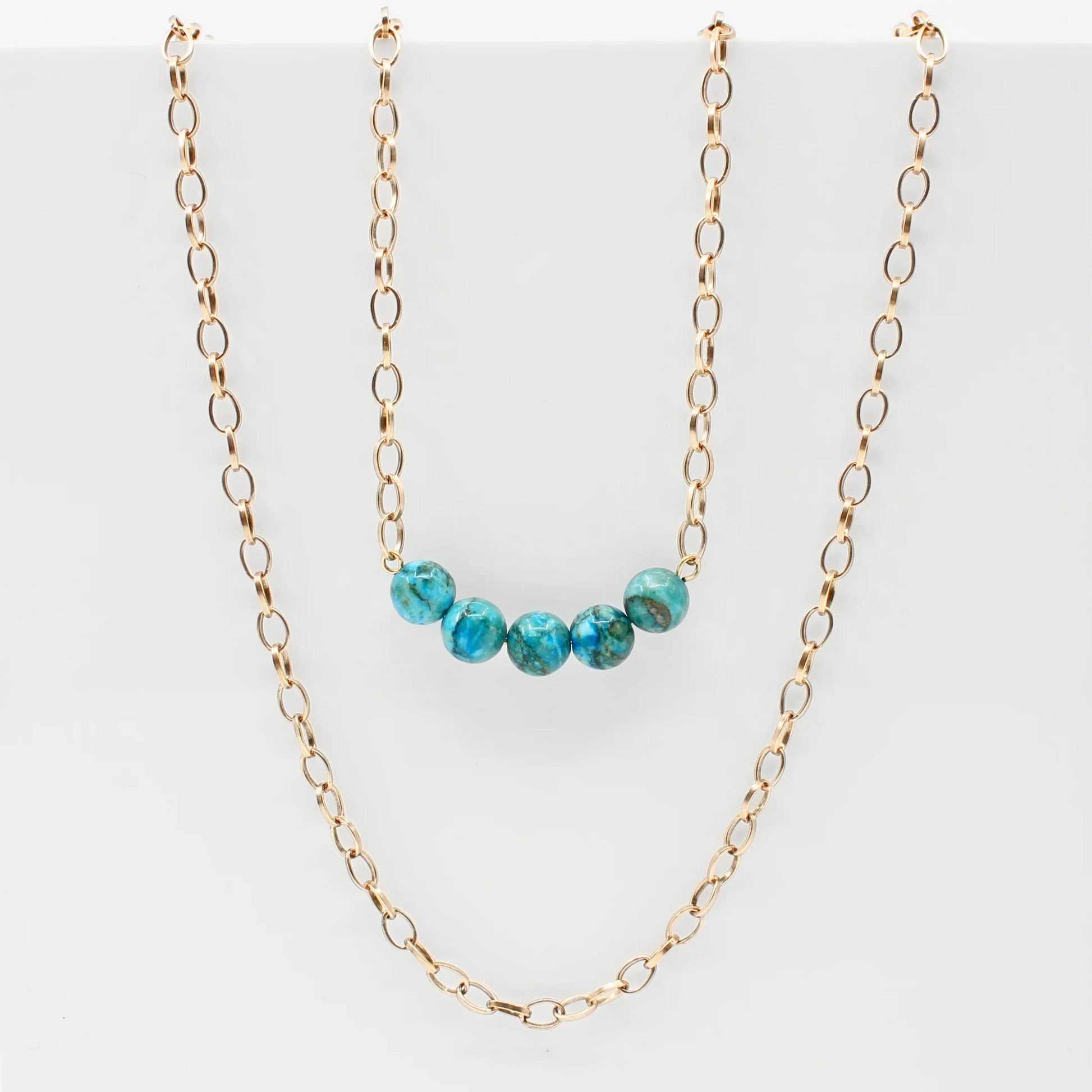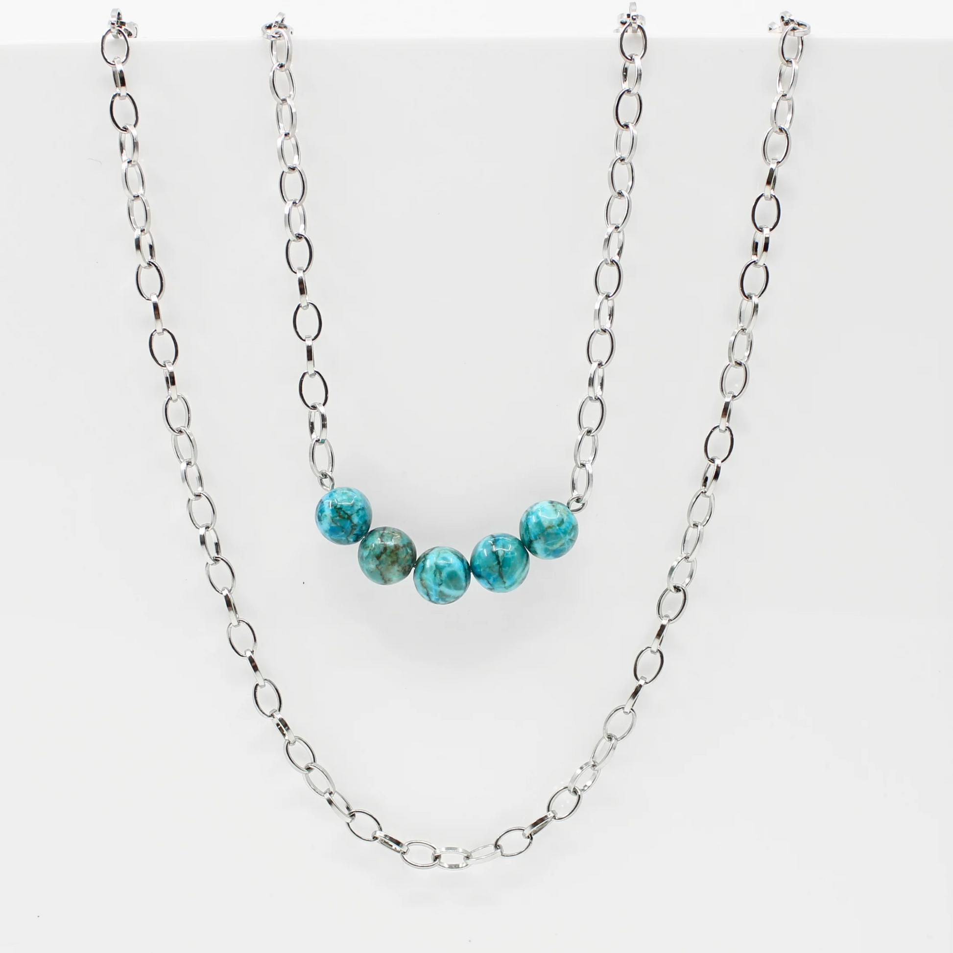 Stainless steel layering chain necklace with Aqua Terra Jasper accent stone details