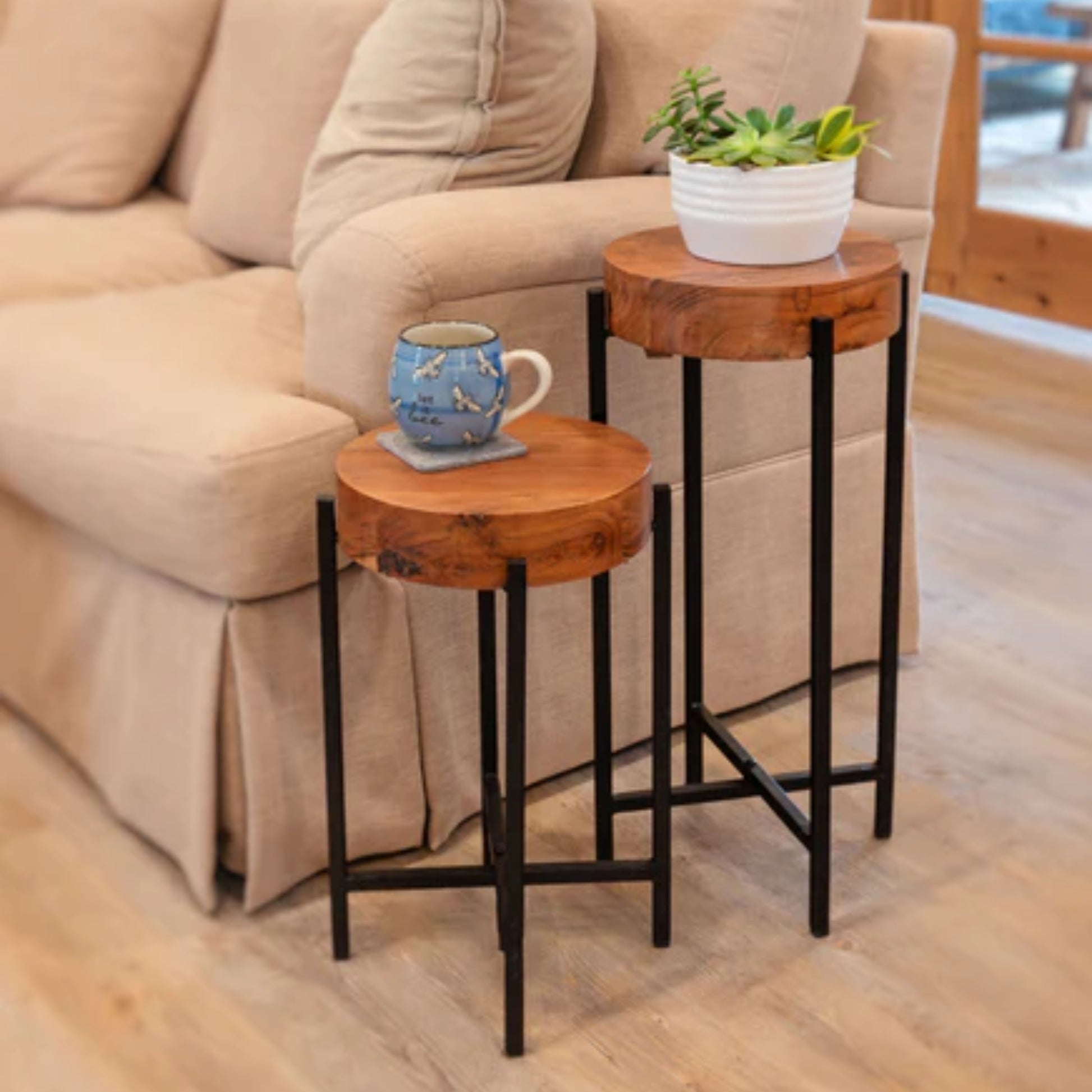 The Berkley Drink Tables are the perfect piece to bring the outdoors in to your home. Made from Acacia wood and finished with a beautiful natural finish these drink tables can be used as a side table near a bed, sofa or chair. The Berkley Drink Tables are a rustic addition to the home and bring a unique versatility to decorating. Due to the artisan nature of this product each item will be uniquely different.