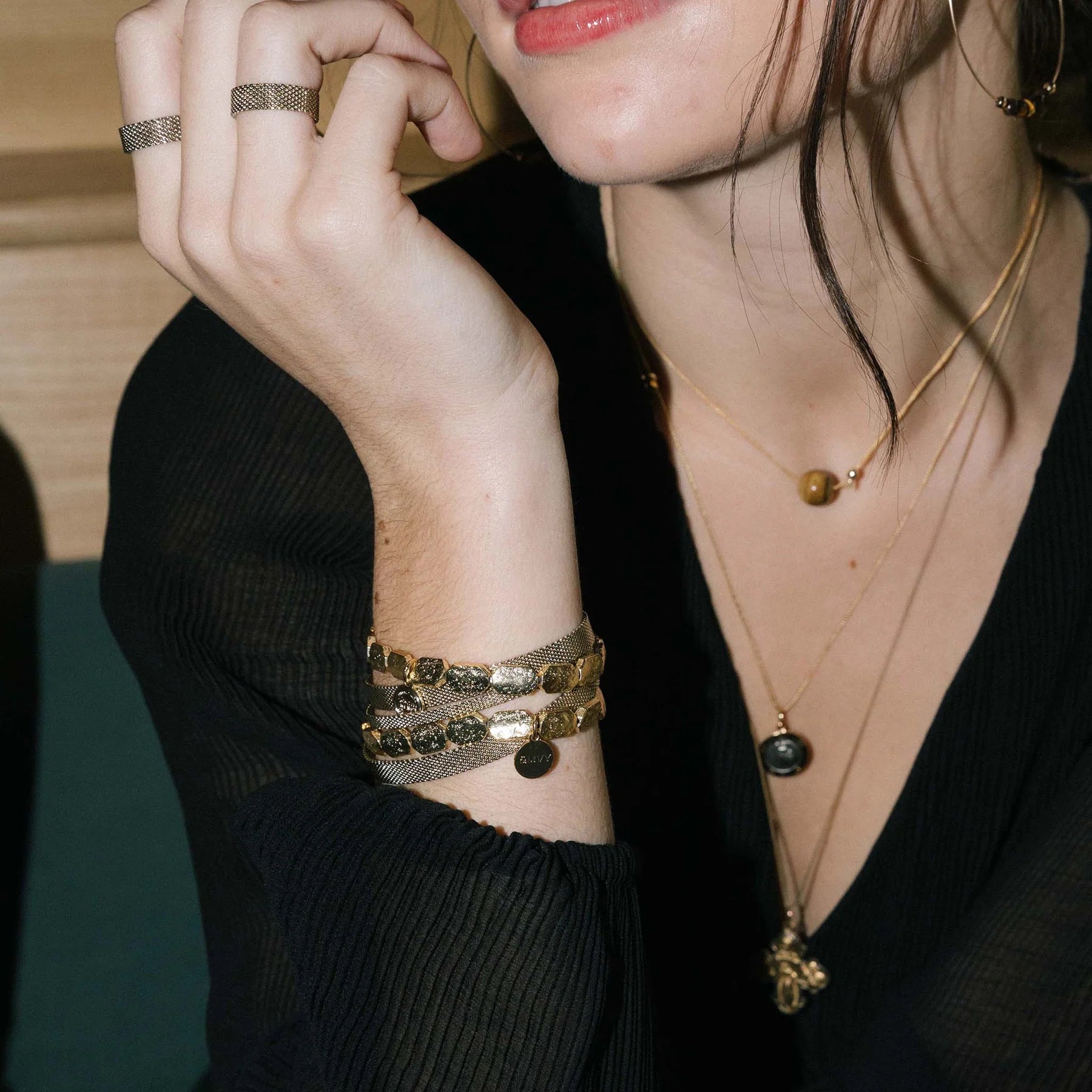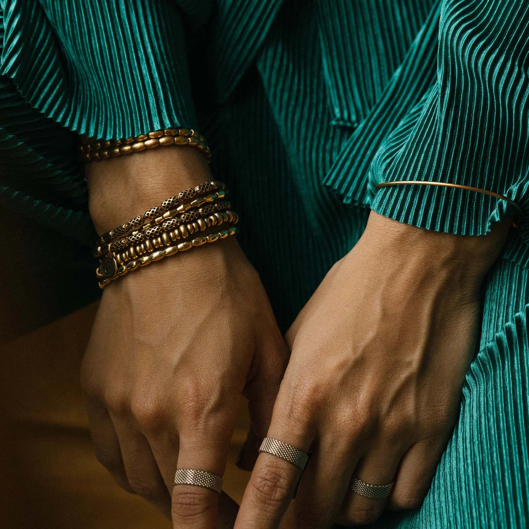 - Everything’s copacetic when you’re rocking this metal beaded bracelet. Because in the ’70s, if you weren’t out to make a statement, you were probably out to lunch.