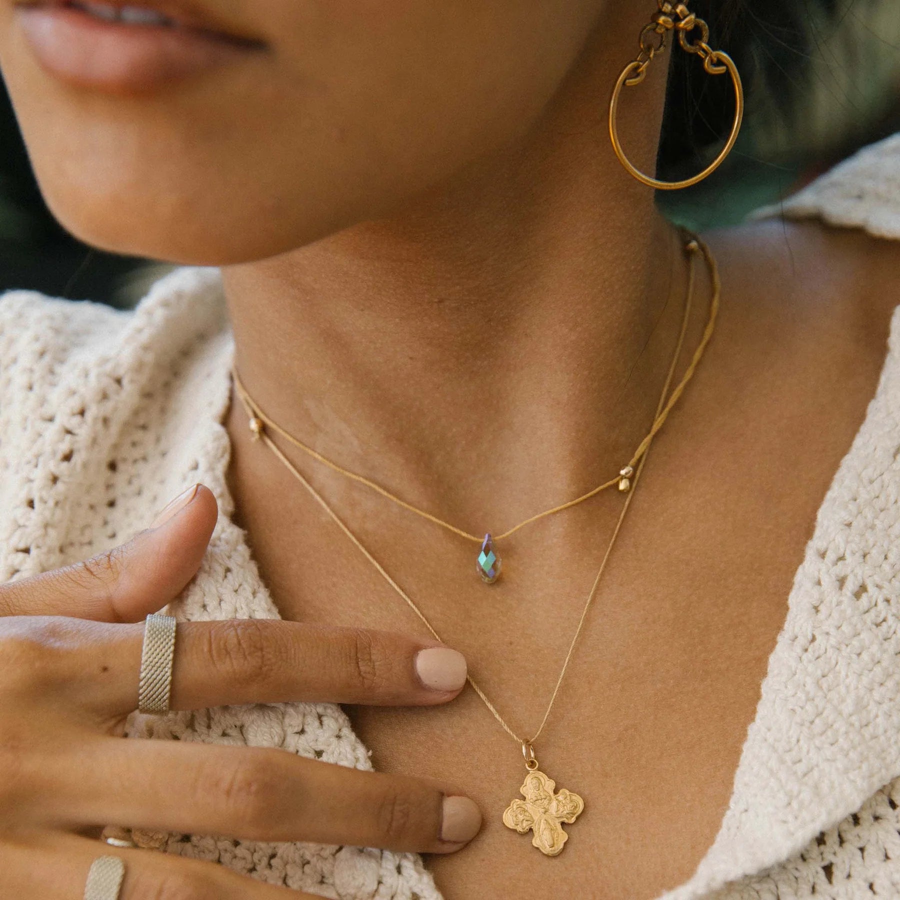 The kind of crystal that won’t tell you your future, but will remind you to stay curious about all the possibilities you can’t even fathom yet. This crystal necklace helps ground you so you can see the unknown as the mystery and come alive in the potential.