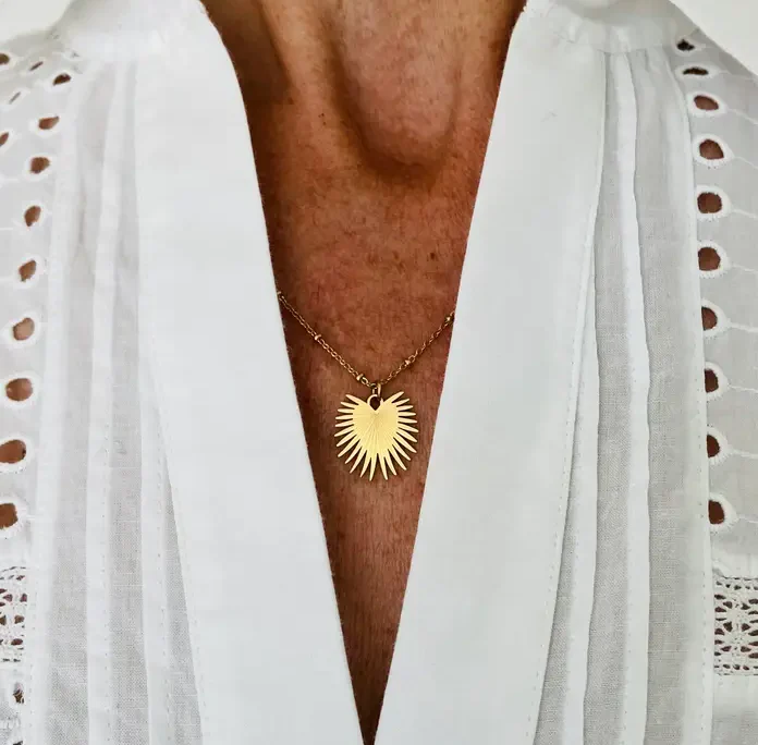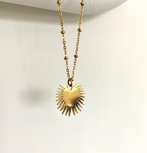 Be inspired by this minimalist necklace with its chic desert look. A delicate tassel, inspired by the shape of desert plants, sways gently on a beaded gold chain. Let this necklace bring a touch of unique desert charm to your everyday style.