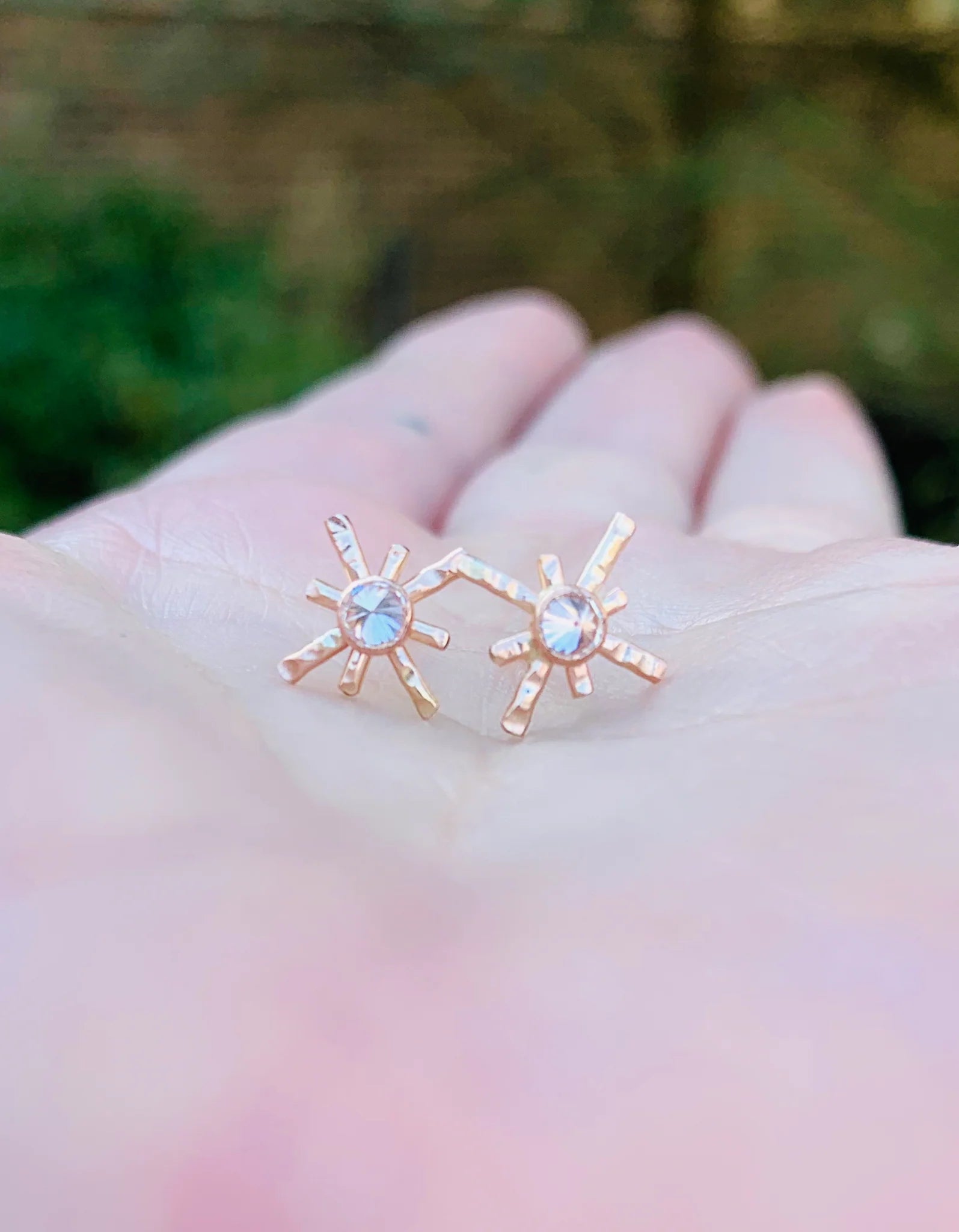 A perfectly imperfect pair of twinkling stars, these magical stud earrings are crafted in 14k Gold Fill with reverse-set Cubic Zirconia centers.
