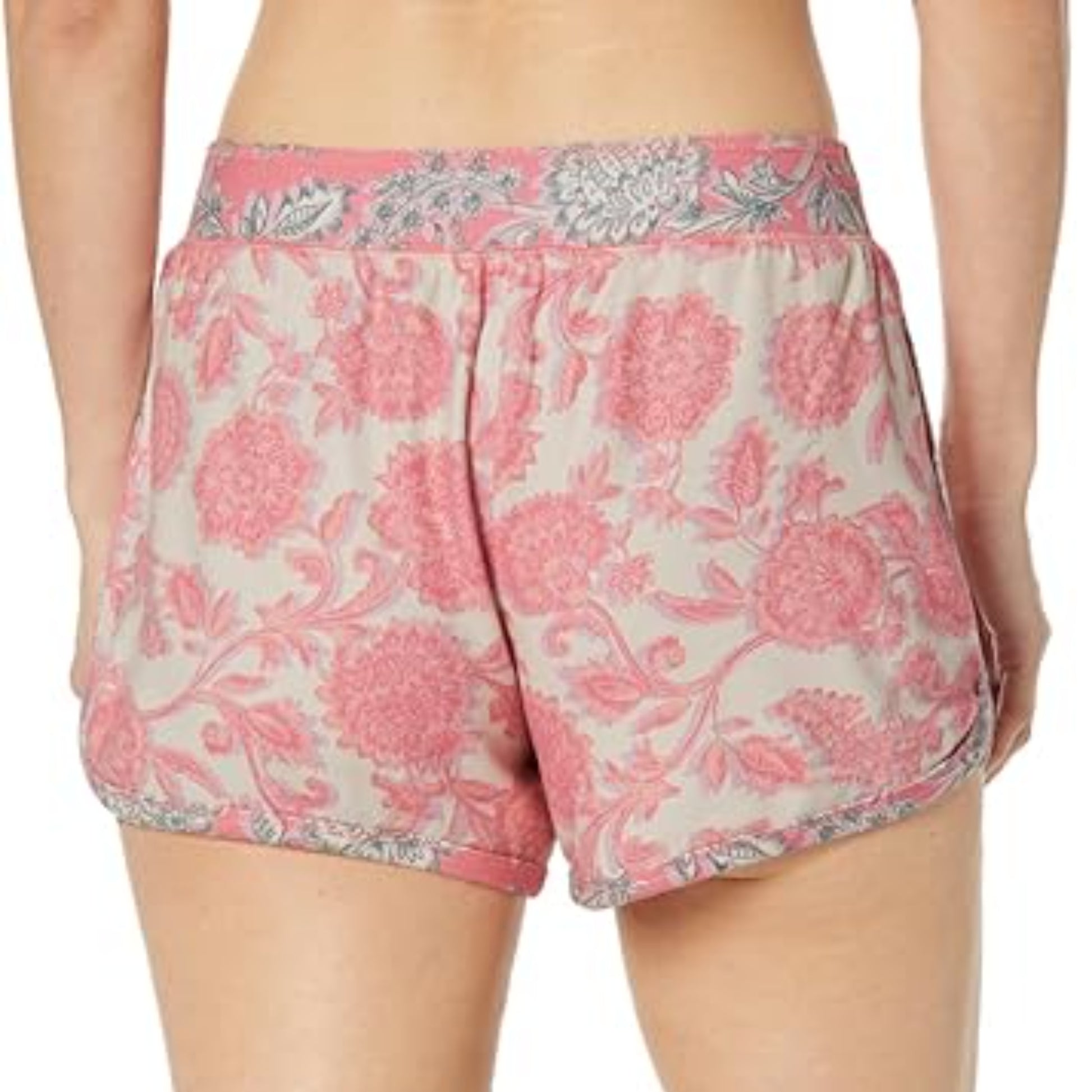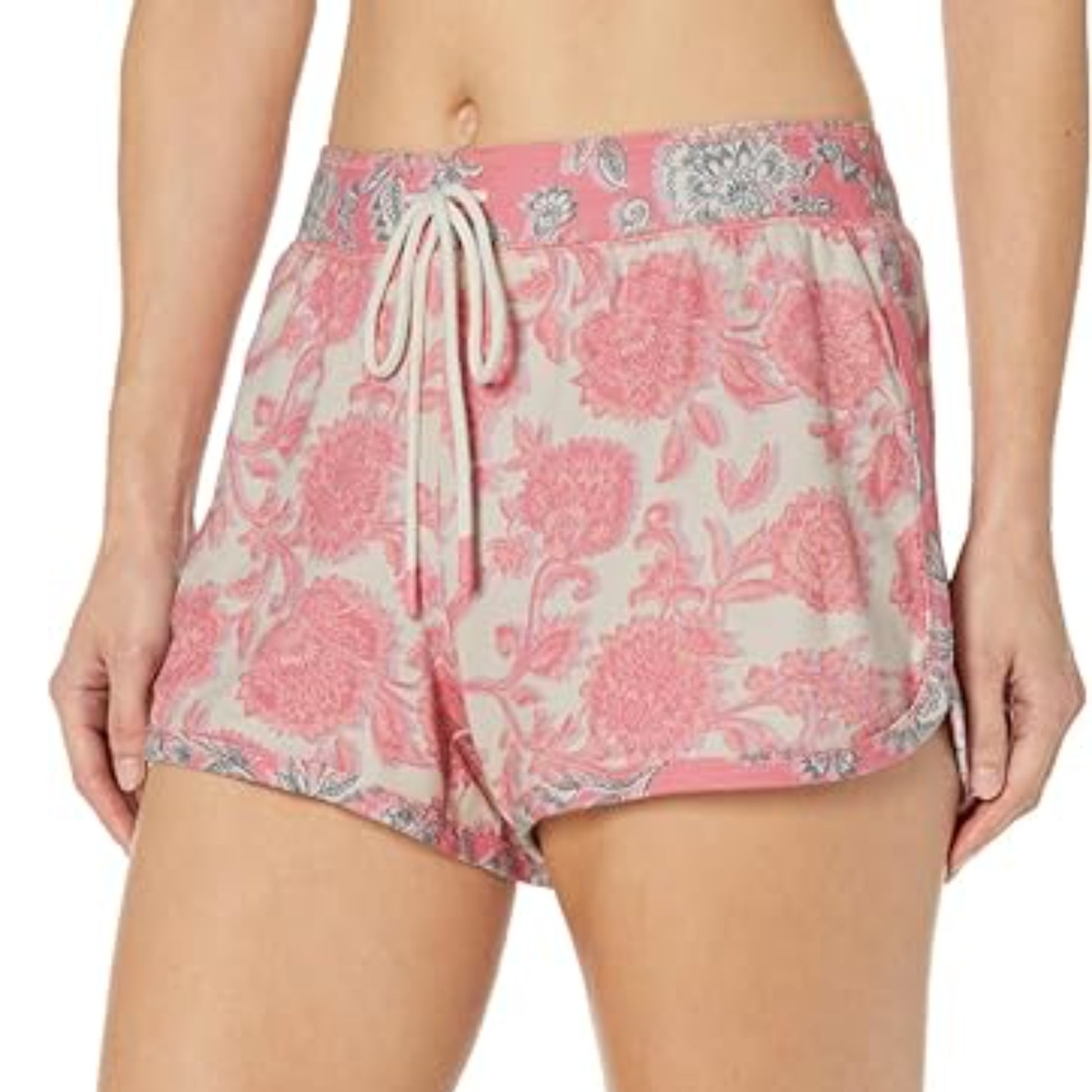 Sleep short in rose-tapestry pattern. Curved leg hem & comfy waist with tie.