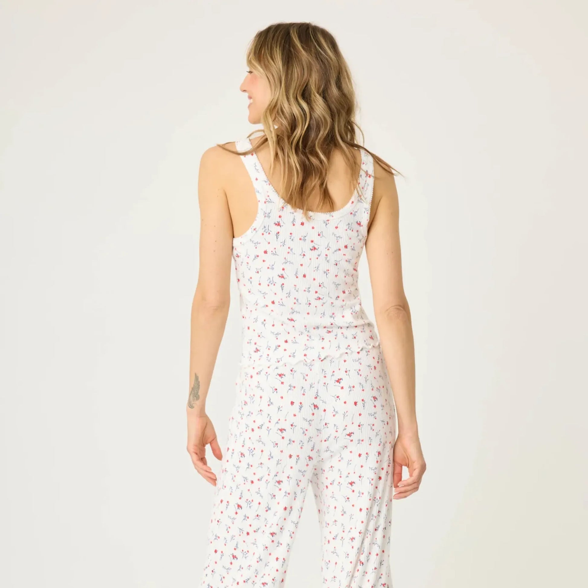 Sweet as can be, this ivory lounge cami is crafted from brushed rib with a touch of stretch. Blooming with a delicate rose print, it includes a scoop-neck cami that’s perfect for slow mornings or cozy nights in.