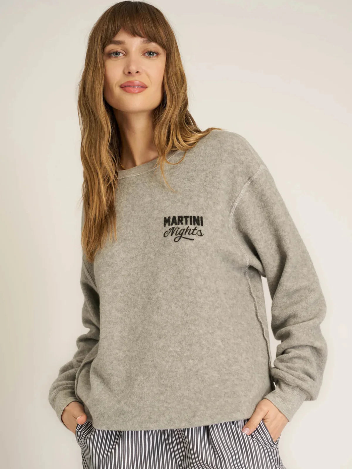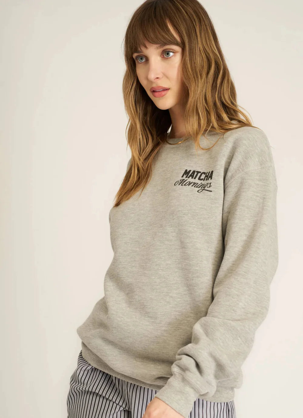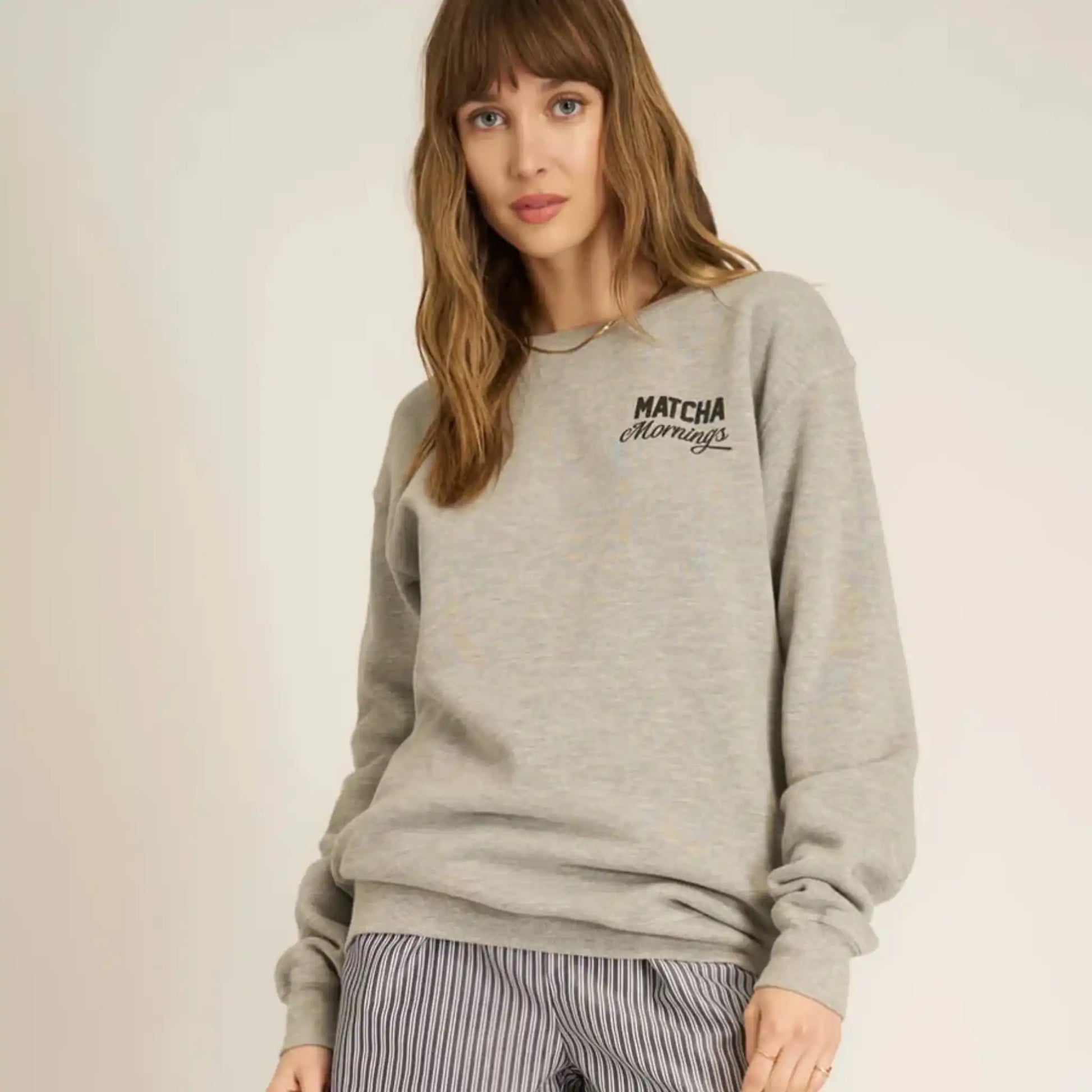 The Matcha Mornings / Martini Nights Reversible Sweatshirt features a relaxed fit and crew neckline with raw stitching down the sides for an effortlessly cool look. The reversible design lets you switch up your style, making it perfect for daytime or night. Pair it with your favorite midi skirt, statement earrings, and sneakers for that "cool girl" look.