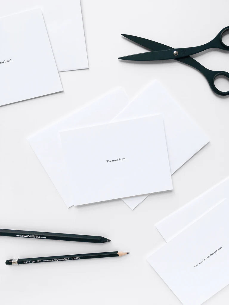 Flat letterpress card with matching envelope. 5.5" × 4.125" (A2).