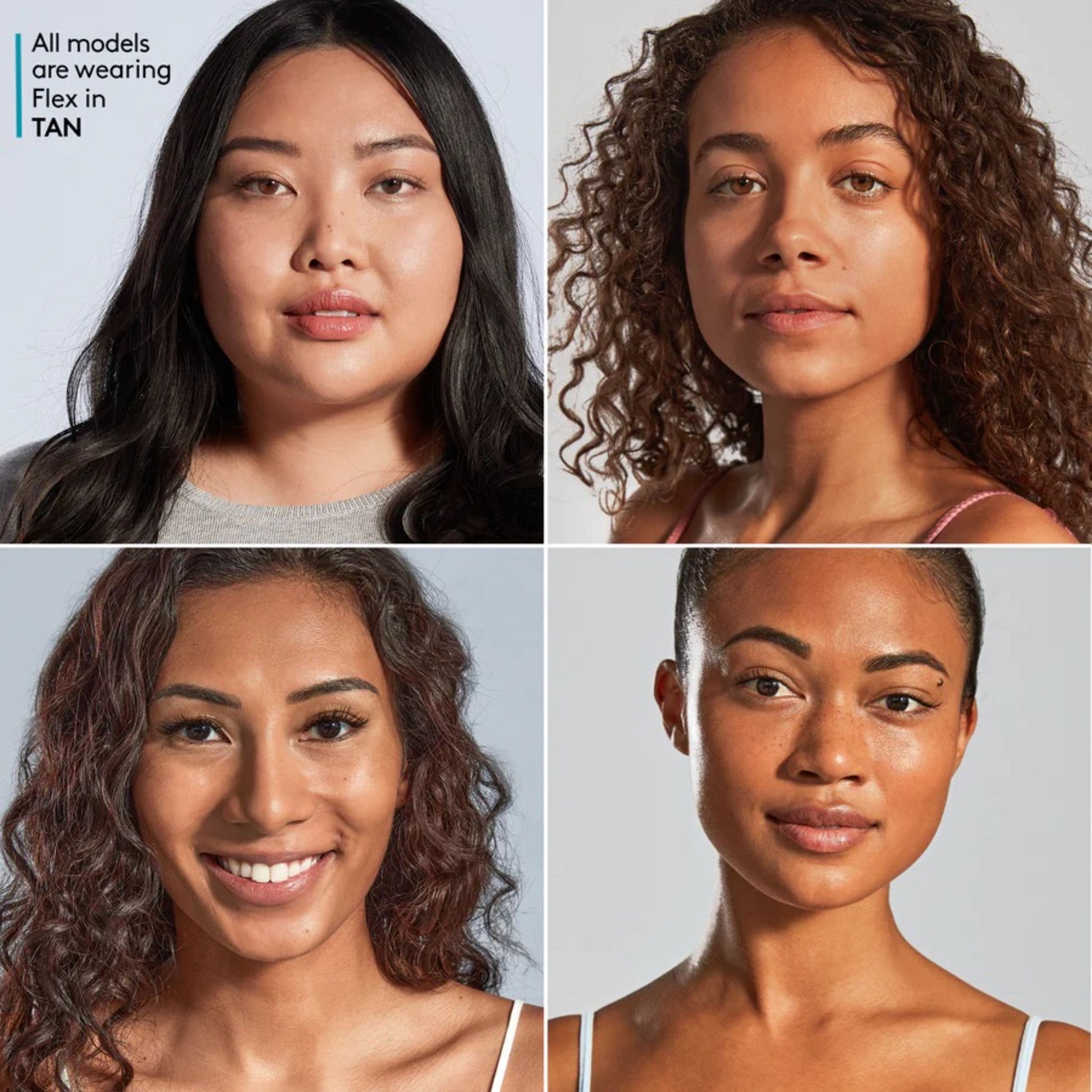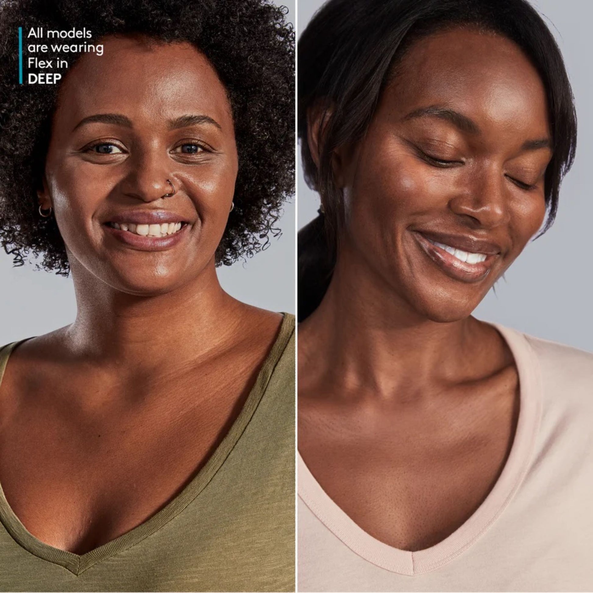 FLEX features innovative, iron oxide pigments that bloom in your fingertips to deliver tone-adapting buildable color coverage with a demi-matte finish.