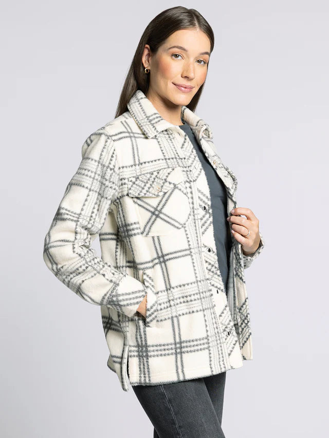 So plush and soft, this jacket is featured in an oversized fit, button front closer, side slits and dual side and chest pockets.