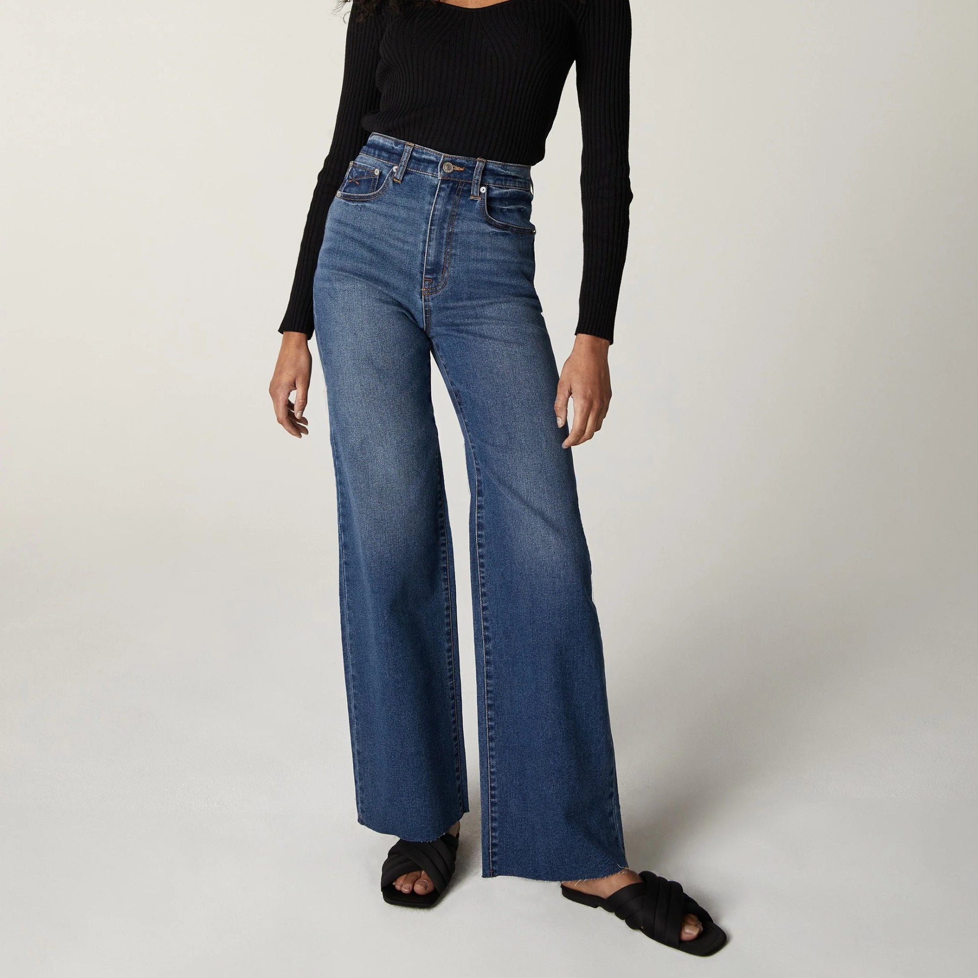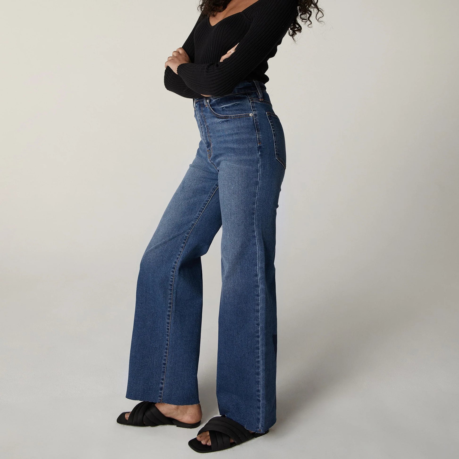 Noemi, a fan favorite high-rise wide leg. Now in a longer, full-length inseam. Featuring 5-pocket styling and antique nickel hardware.